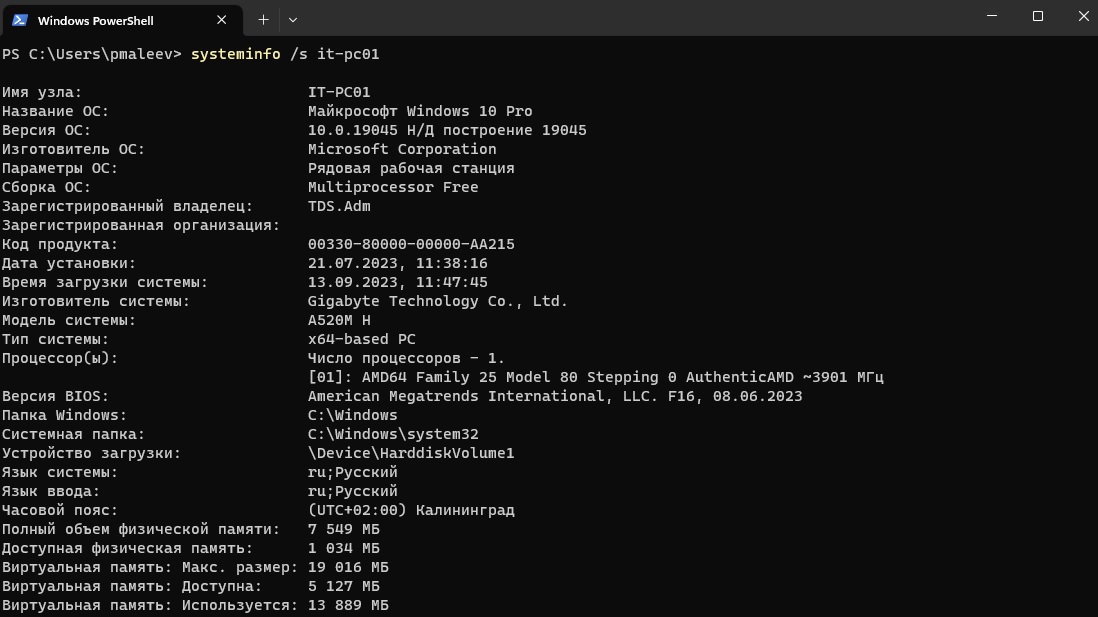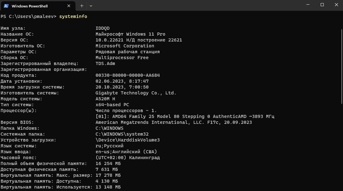 Чтобы получить информация о системе через PS или CMD можно воспользоваться командой systeminfo